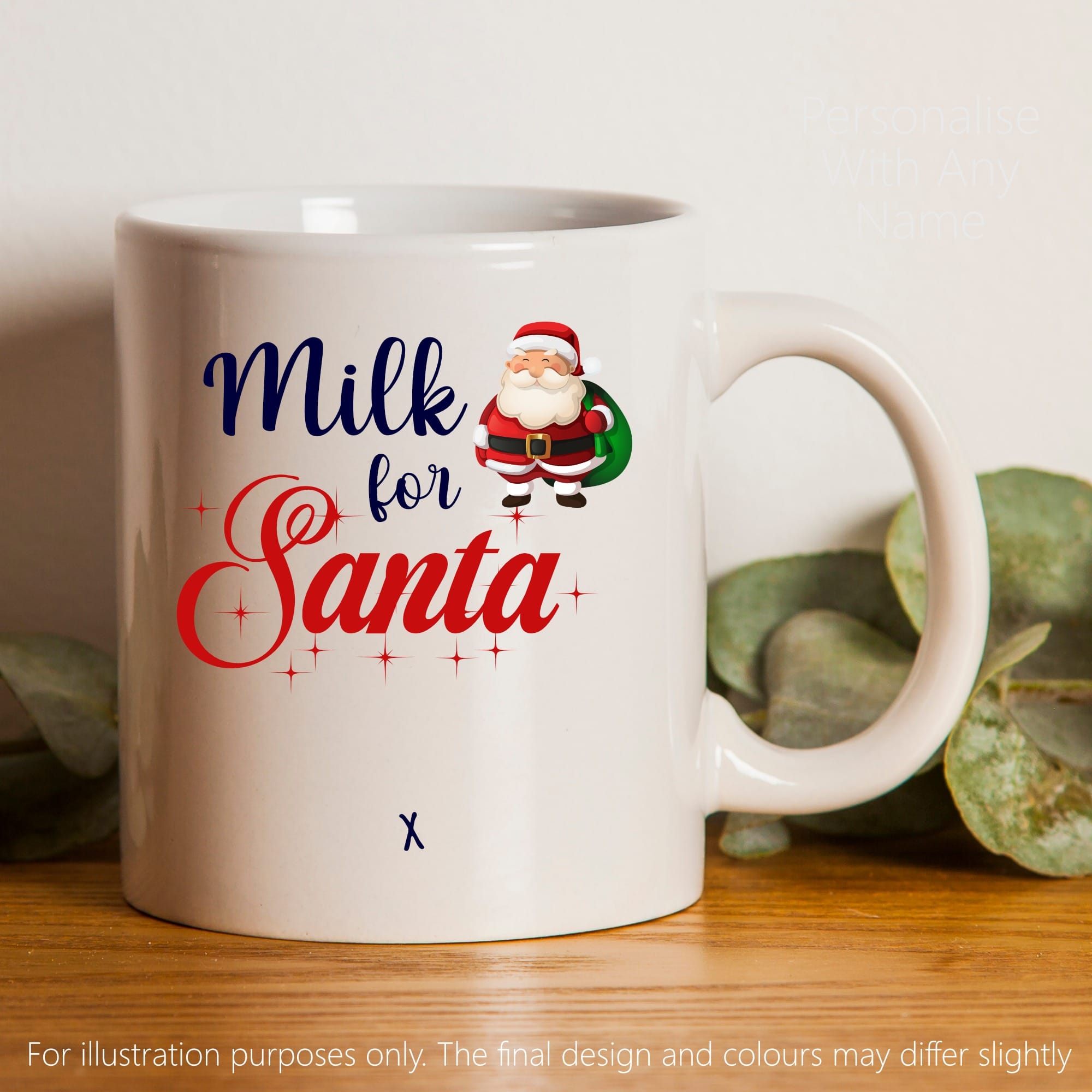 This 11oz ceramic mug is the perfect mug for your son or daughter or grandchildren to leave for Santa on Christmas Eve. The mug has the words “Milk For Santa” along with an image of Santa. At the bottom the text reads “Love from” and can be personalised with your choice of name along with a “x”. If you would like anything else apart from the name changing please contact us.